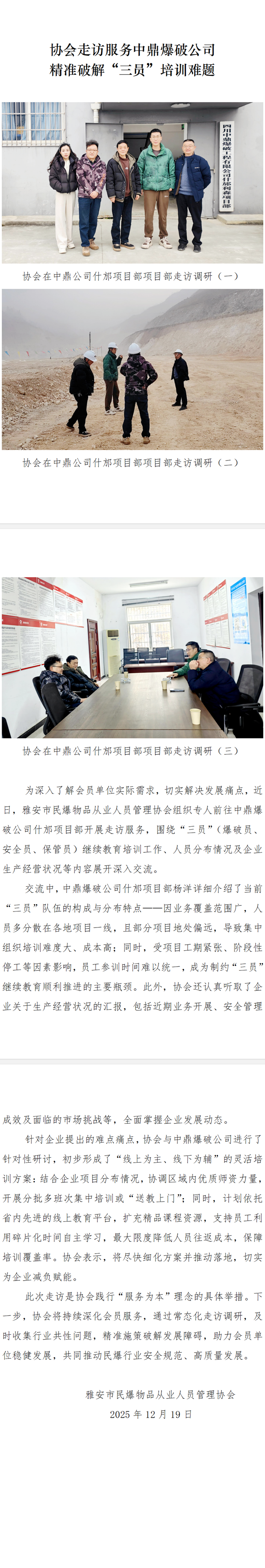 协会走访服务中鼎爆破公司 精准破解“三员”培训难题