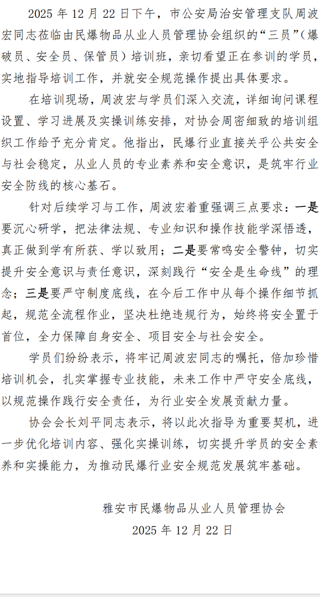协会走访服务中鼎爆破公司 精准破解“三员”培训难题